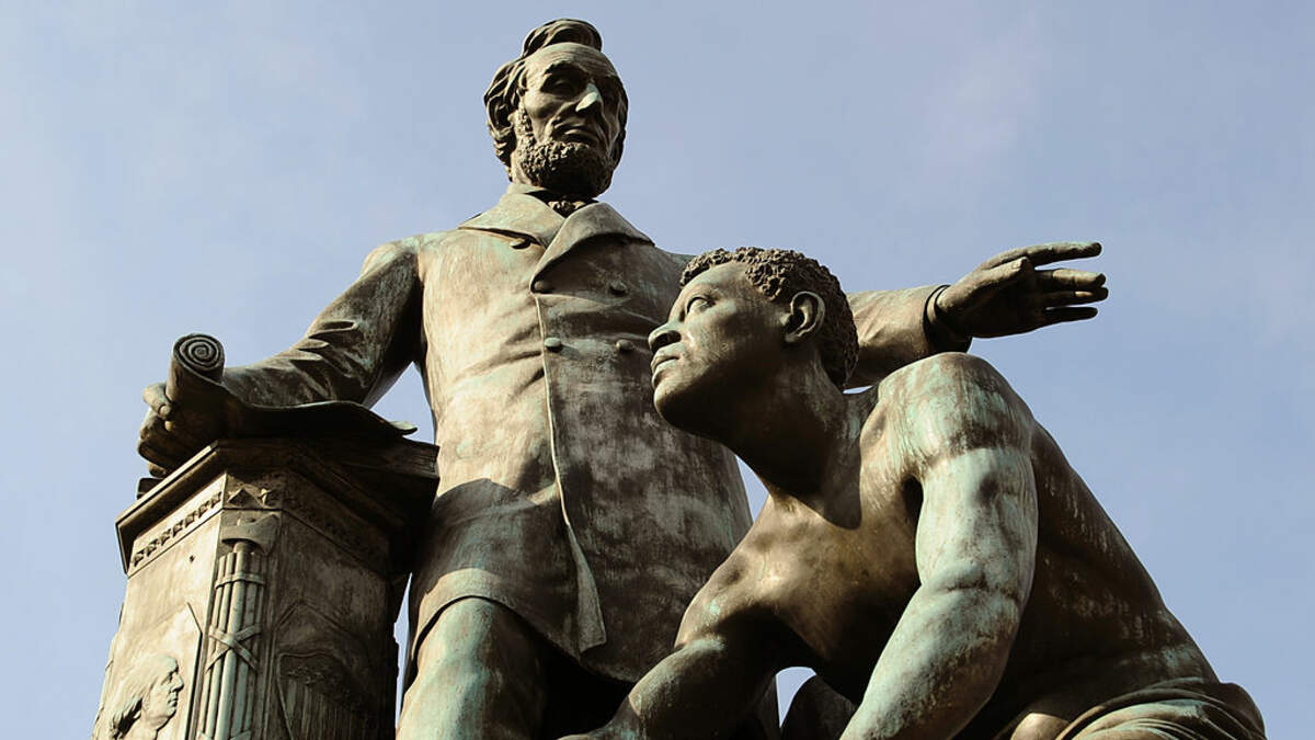 The monument was intended to show Lincoln freeing the man from slavery, but a new petition claims that it “instead represents us still beneath someone else.”